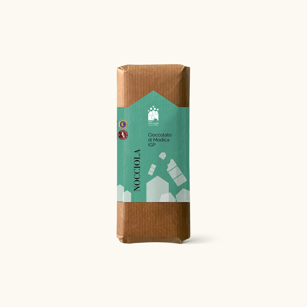 Il Cioccolato di Modica IGP alla Nocciola è una delizia che unisce la tradizione secolare del cioccolato modicano con la croccantezza e l’aroma intenso della nocciola tostata. Prodotto nel laboratorio artigianale della Cooperativa Sociale Casa Don Puglisi, questo cioccolato è realizzato con una lavorazione a freddo che mantiene intatte le proprietà del cacao e la sua tipica consistenza granulosa. Le nocciole, selezionate con cura, arricchiscono il gusto con note tostate e avvolgenti, rendendo ogni morso un’esperienza autentica e appagante.