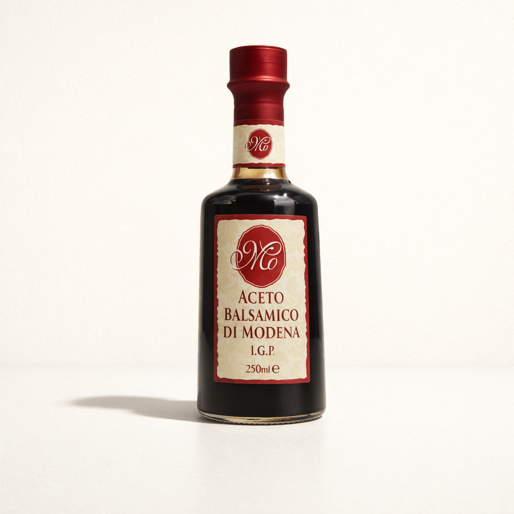 Questo Aceto Balsamico di Modena IGP nasce da una miscela accuratamente bilanciata di mosto cotto e aceto di vino, con una percentuale di mosto pari al 70%, che gli conferisce struttura, morbidezza e una naturale dolcezza. Il periodo di riposo in botte per oltre 60 giorni consente agli ingredienti di armonizzarsi, sviluppando un profilo gustativo equilibrato e una consistenza piacevolmente densa. Il risultato è un condimento versatile e raffinato, capace di coniugare freschezza e rotondità, con note agrodolci ben integrate che esaltano sia preparazioni quotidiane sia piatti più ricercati. Prodotto dalla cooperativa storica Acetaia La tradizione, la lavorazione segue il disciplinare IGP, garanzia di qualità, tracciabilità e legame con la tradizione produttiva modenese.