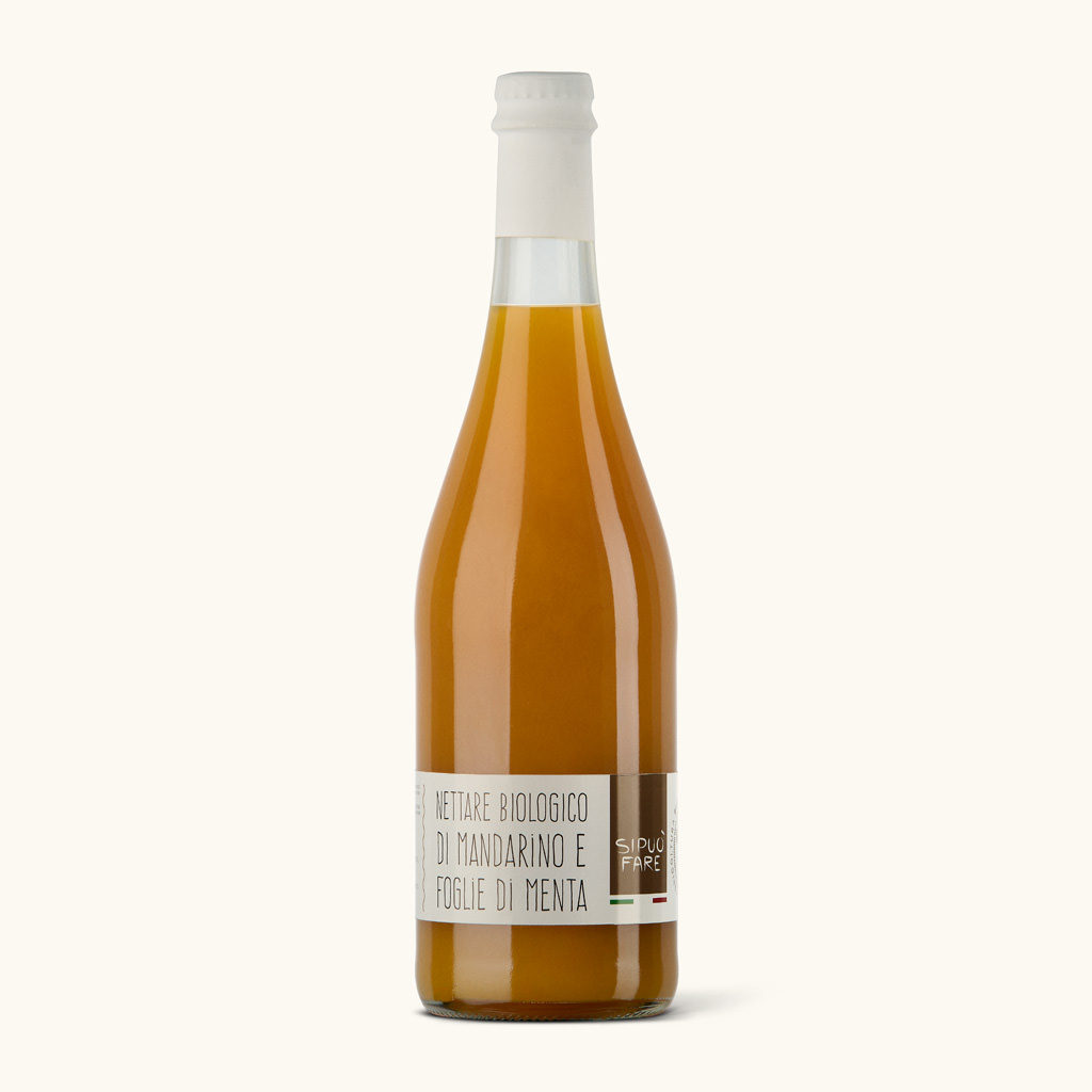 Il Nettare Biologico di Mandarino e foglie di Menta è un prodotto sano e naturale, senza conservanti, aromi o additivi. È realizzato utilizzando unicamente frutta biologica raccolta al giusto grado di maturazione con l%u2019aggiunta di solo zucchero di canna e succo di limone di Siracusa IGP. Prodotto da Si Può Fare Società Agricola Cooperativa Sociale Onlus, una realtà impegnata nella valorizzazione del territorio siciliano attraverso metodi di produzione artigianali e sostenibili. Un sorso ricco di gusto e benessere che racchiude la vera essenza della Sicilia.