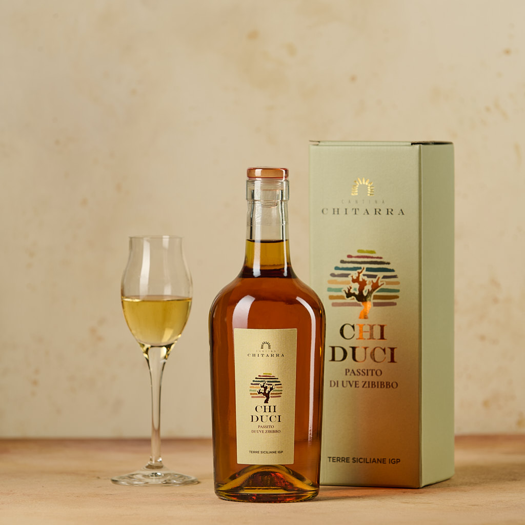 Scopri la dolcezza autentica della Sicilia con il Passito Zibibbo “Chi Duci”, un vino dolce prezioso e raffinato, prodotto artigianalmente da Cantina Chitarra nel cuore dell’isola.