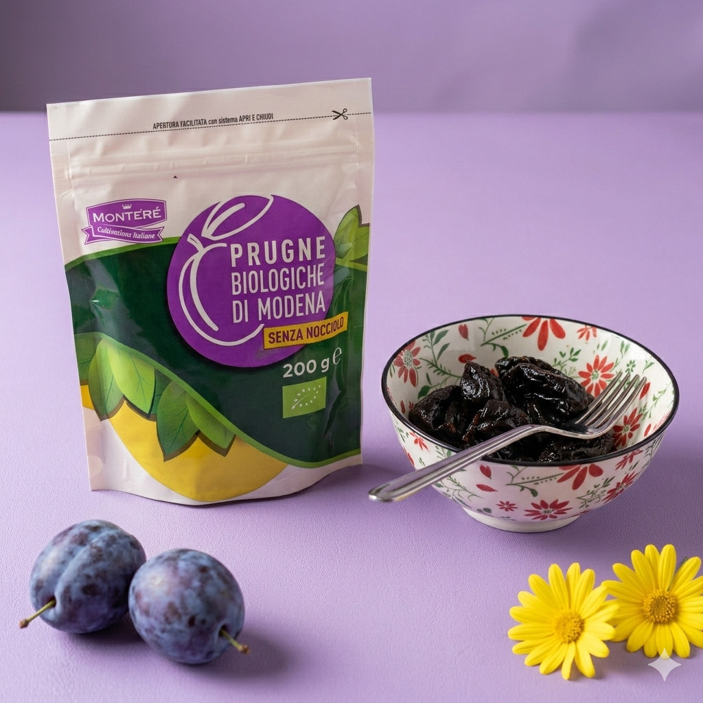 Prova le Prugne Secche senza Nocciolo Bio di Monté: qualità nutrizionali, profumi e naturale morbidezza.
