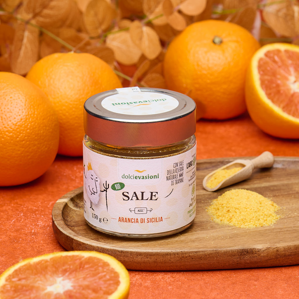 Il Sale di Sicilia all'Arancia Bio sprigiona la freschezza degli agrumi siciliani in un condimento artigianale dal gusto vivace e delicatamente dolce. Usalo per dare un tocco creativo e solare alle tue ricette quotidiane