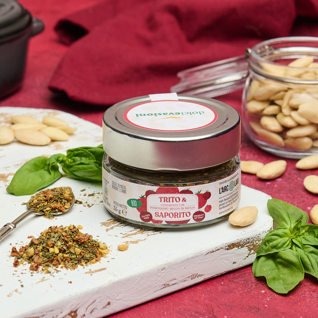 Il Trito e Saporito con Pomodoro Secco Bio è un mix rustico e intenso che racchiude il cuore della cucina siciliana, tra croccantezza e profumi mediterranei. Provalo per dare carattere e autenticità ai tuoi piatti.