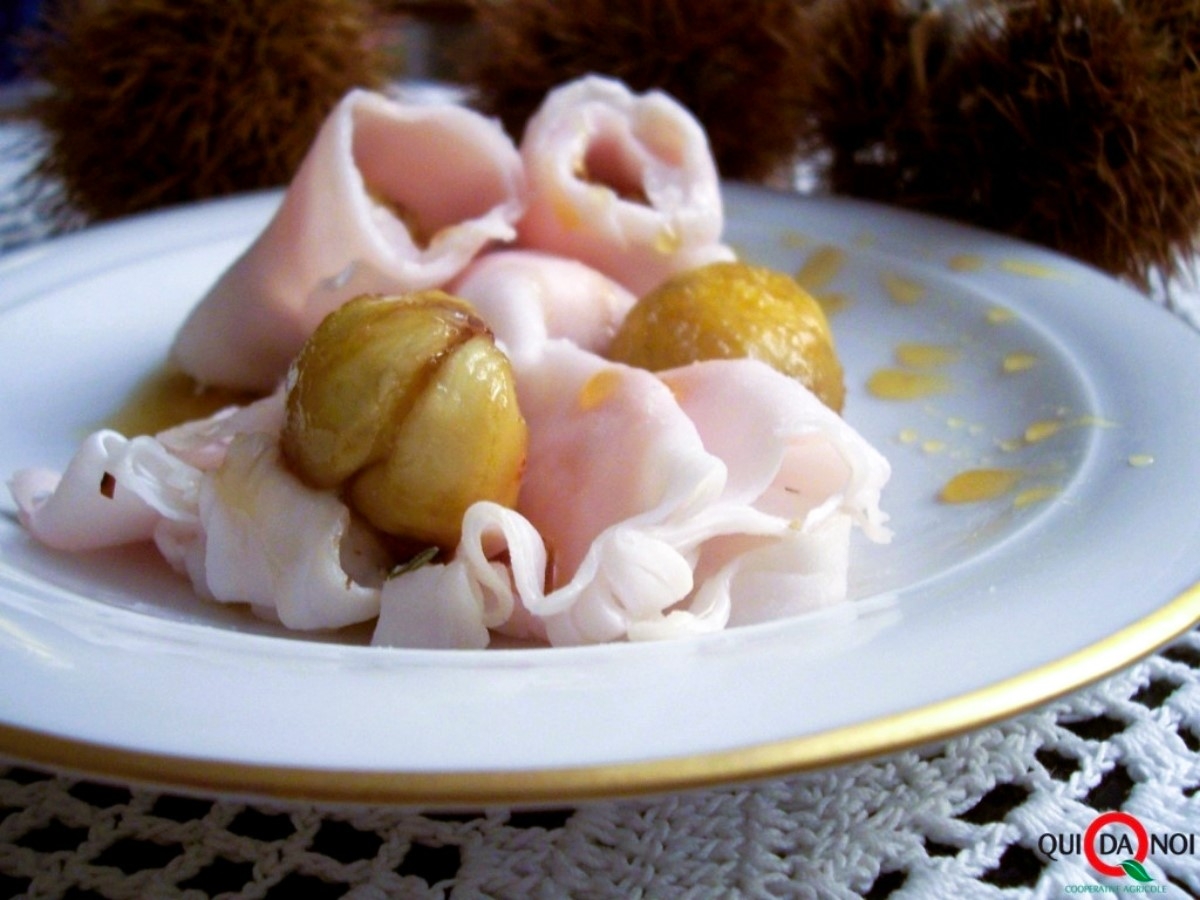 Le castagne accompagnate dal lardo sono un antipasto sfizioso e goloso, adatto per l’aperitivo, e che, all’epoca, si considerava un vero e proprio pasto completo.