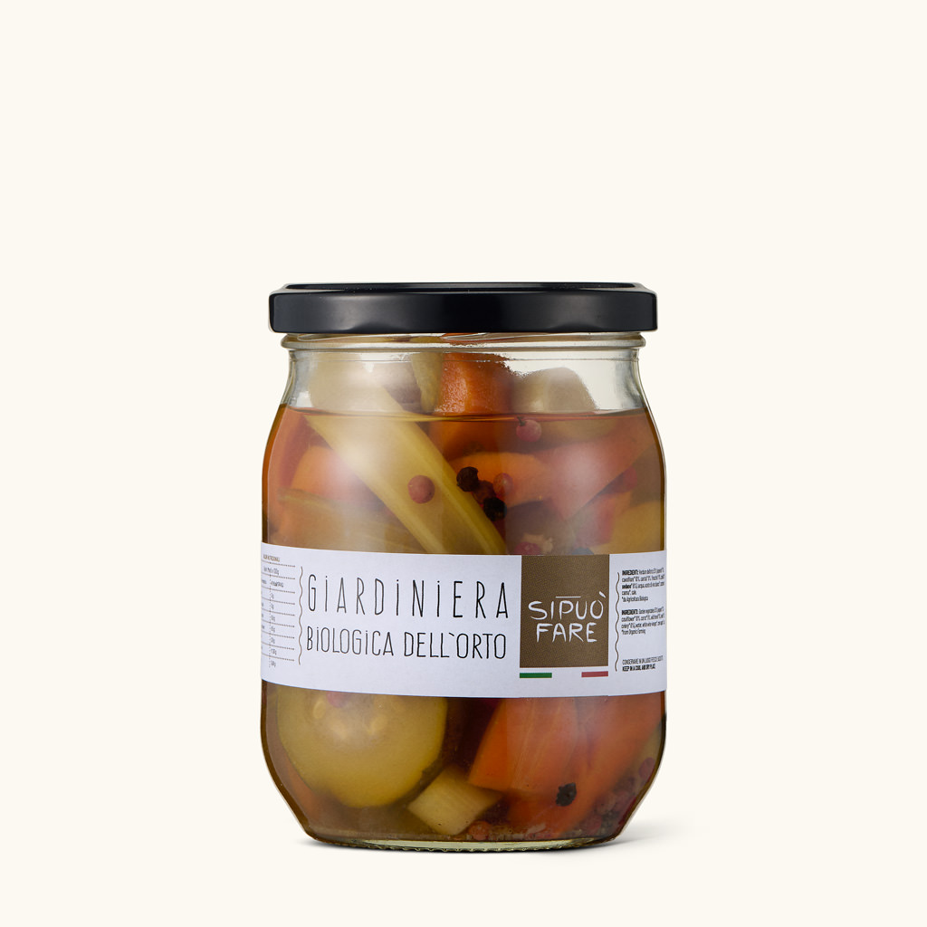 Scopri la giardiniera biologica artigianale firmata Si Può Fare, cooperativa sociale siciliana che promuove inclusione e sostenibilità. Un mix croccante di verdure fresche e di stagione.