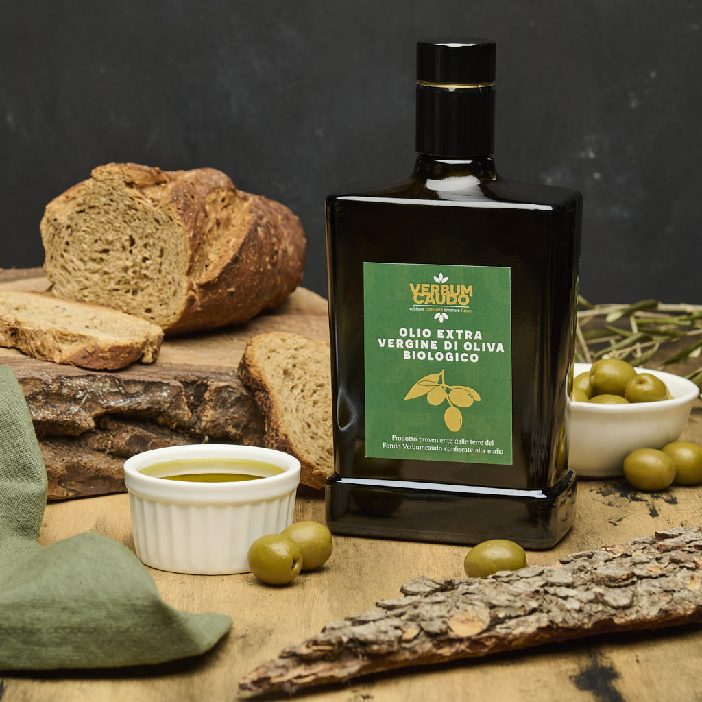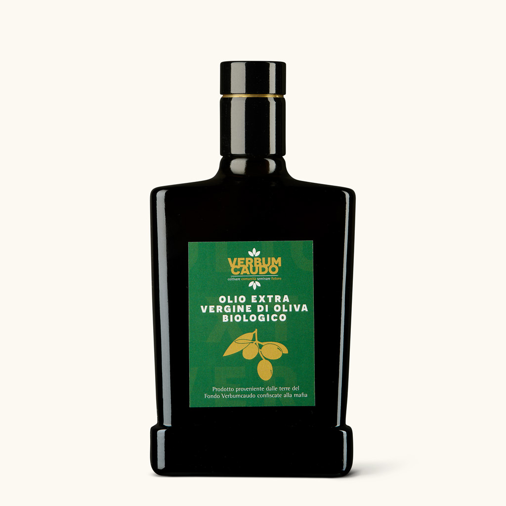 Quest’olio extravergine d’oliva biologico nasce in un fondo agricolo confiscato alla mafia e restituito alla comunità grazie all’impegno della Cooperativa Sociale Verbumcaudo.