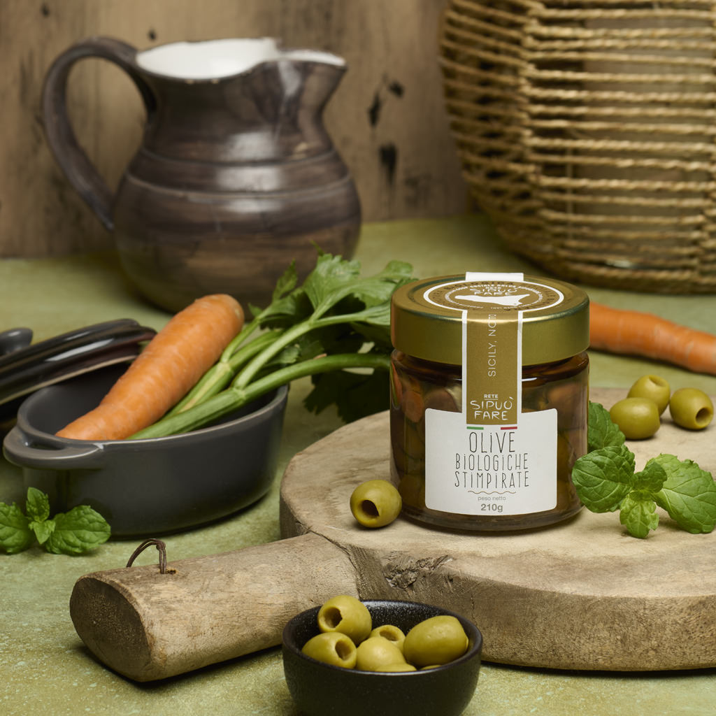 Scopri il sapore intenso e genuino delle olive "stimpirate", un'antica ricetta della tradizione siciliana. Tutet olive selezionate a mano e biologiche, un frutto unico per croccantezza e polpa.